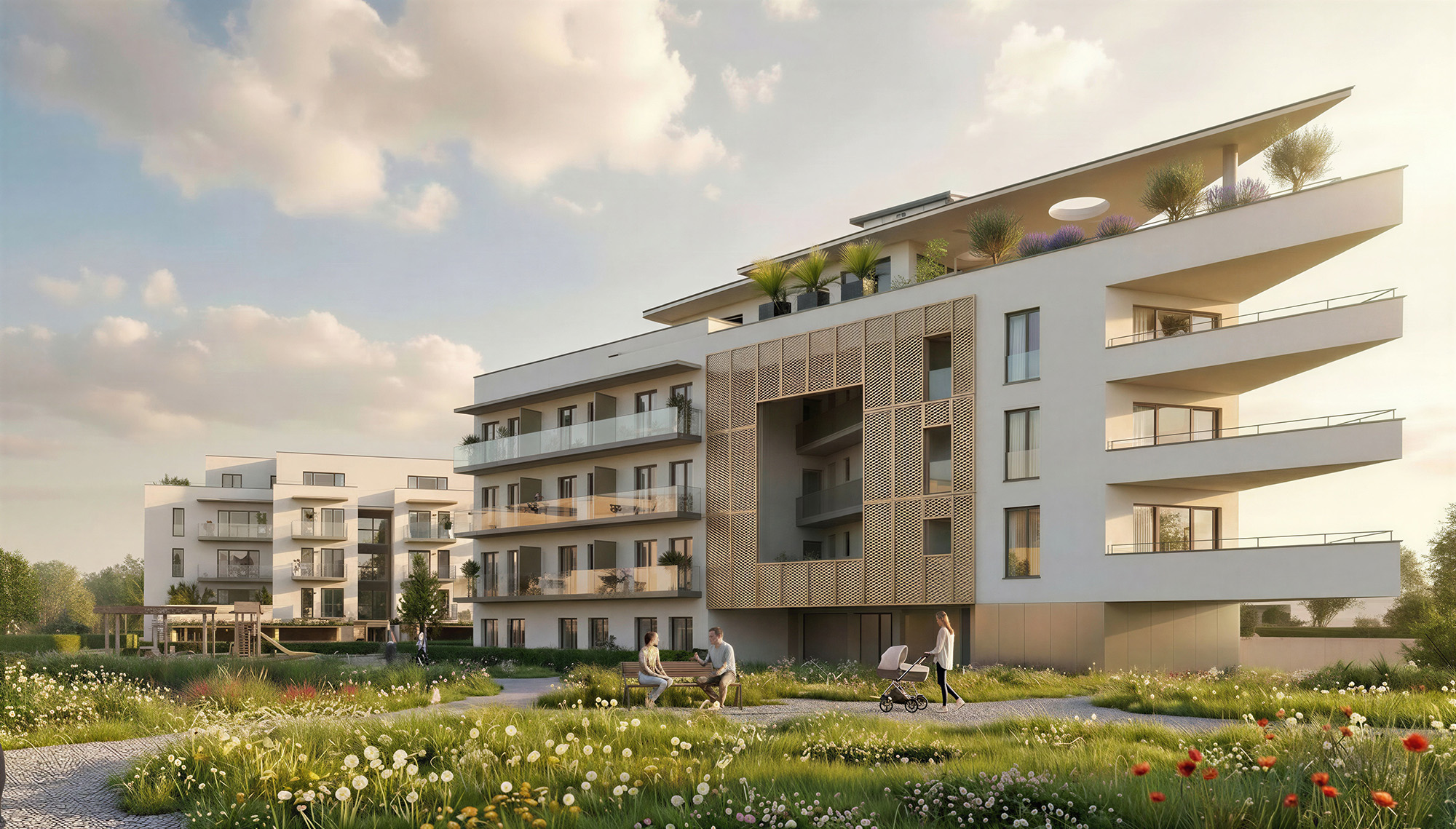 Entdecken Sie 28 moderne Eigentumswohnungen (45–115 m²) mit Balkon, Terrasse oder Garten – in naturnaher Lage und mit hohem Wohnkomfort.